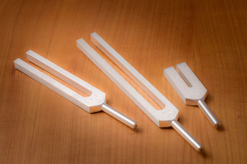 Ich bringe eine Vielzahl von Instrumenten mit – Stimme, Klangliege, Klangschalen, Stimmgabeln und Rasseln. Die verschiedenen Instrumente haben zu mir gefunden.